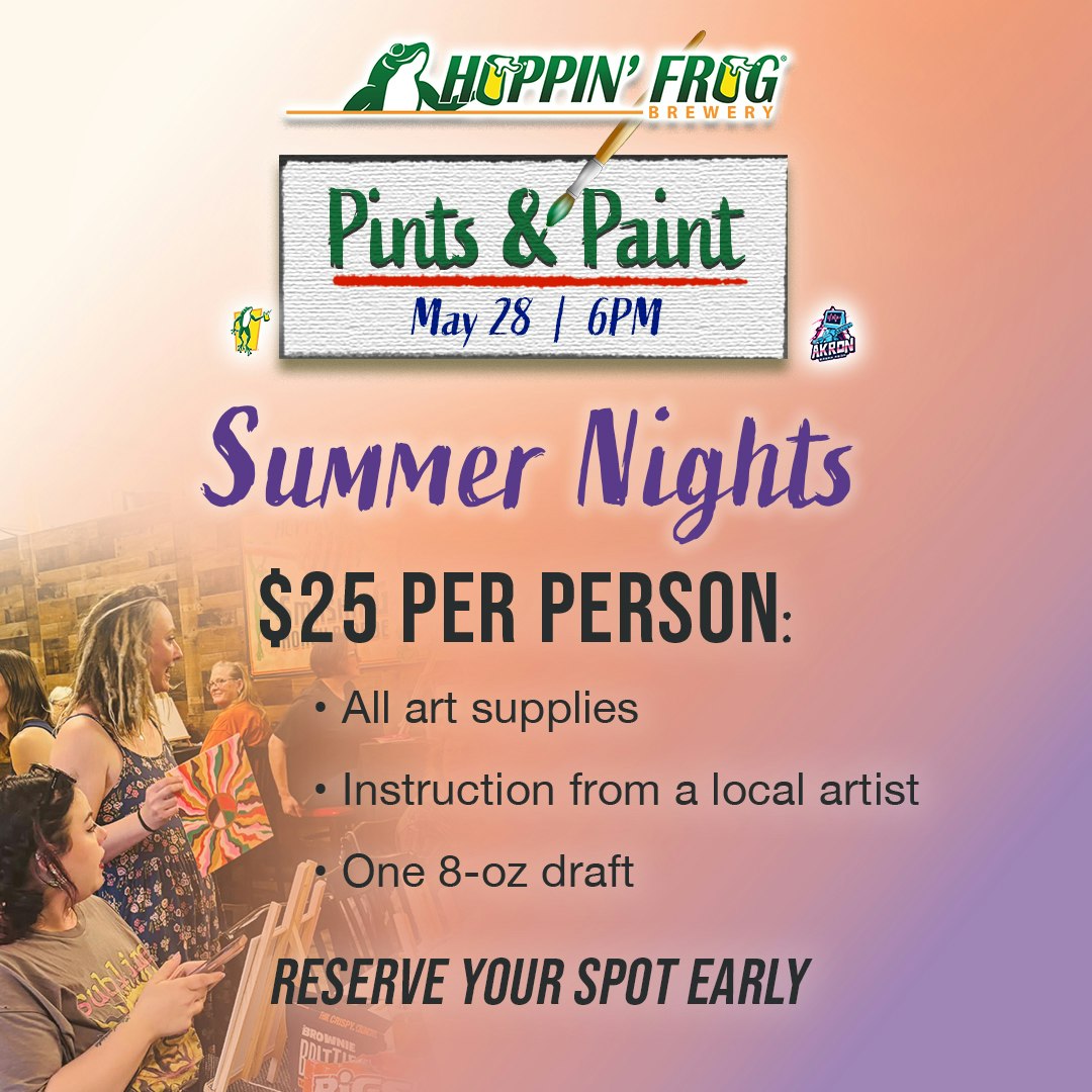 Join us for a creative summer evening at Hoppin’ Frog Brewery with our next Pints & Paint: Summer Nights event.